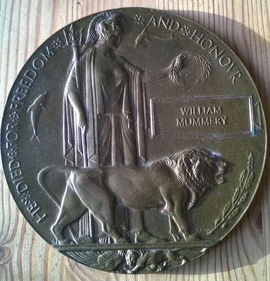 In World War I when a soldier died their family was given a “Dead Man’s Penny”, illustrated below.